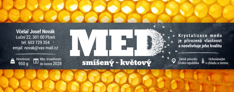 Zadejte jméno a kontakty, které chcete na etiketě. Prostor je omezen proto se řiďte tím co je na vzoru etikety. Chcete-li u jména i Včelař nebo Včelařství atd. pište jméno i s tímto přívlastkem.