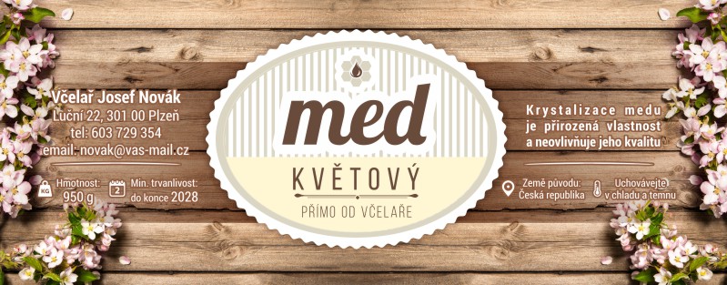 Zadejte jméno a kontakty, které chcete na etiketě. Prostor je omezen proto se řiďte tím co je na vzoru etikety. Chcete-li u jména i Včelař nebo Včelařství atd. pište jméno i s tímto přívlastkem.