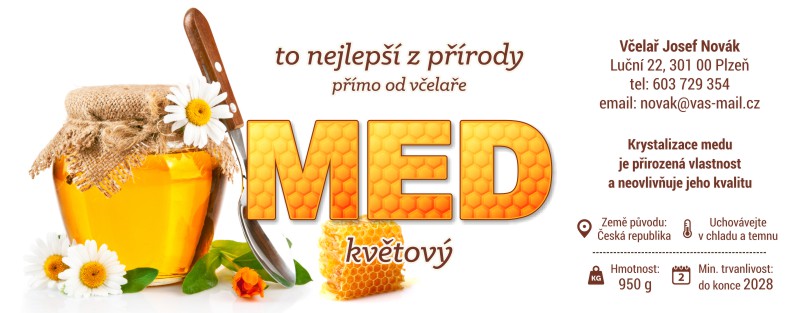 Zadejte jméno a kontakty, které chcete na etiketě. Prostor je omezen proto se řiďte tím co je na vzoru etikety. Chcete-li u jména i Včelař nebo Včelařství atd. pište jméno i s tímto přívlastkem.