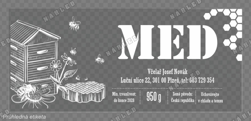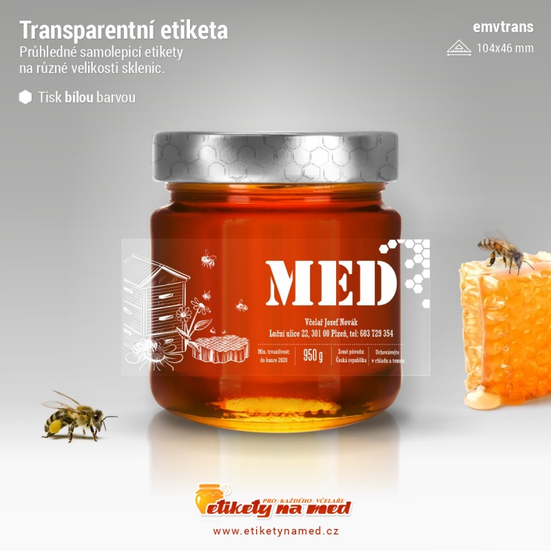 Úvod > Transparentní etikety na med > Transparentní etikety na med 104x46mm - tisk bílou