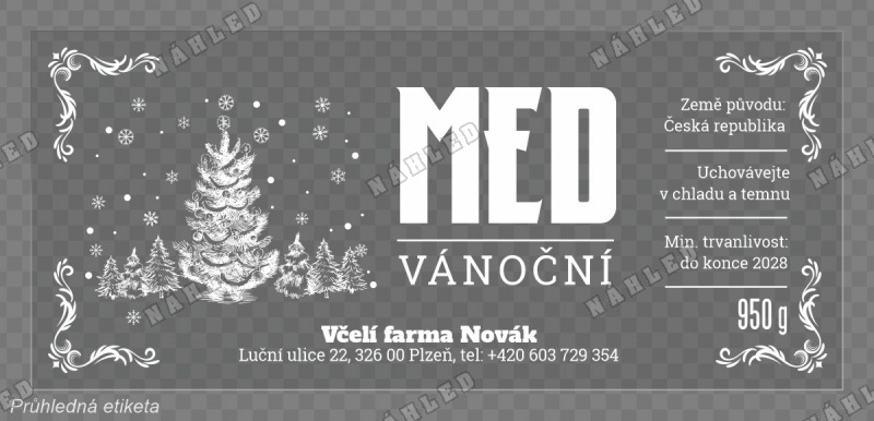 Úvod > Transparentní etikety na med > Transparentní etikety na med 104x46mm - tisk bílou
