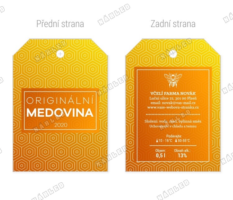 Úvod > Visačky na med > Visačky 48x67mm na medovinu - s údaji jako na etiketě